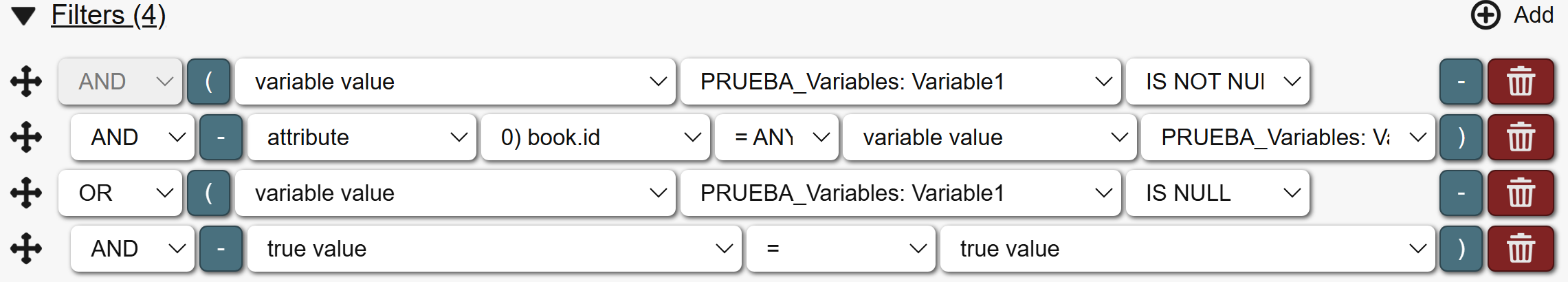 At the time I added true=true, I was rewriting the whole condition so probably something else was preventing the records to show at form load, but now the condition is like this, and it works as expected for a where condition in an SQL statement.